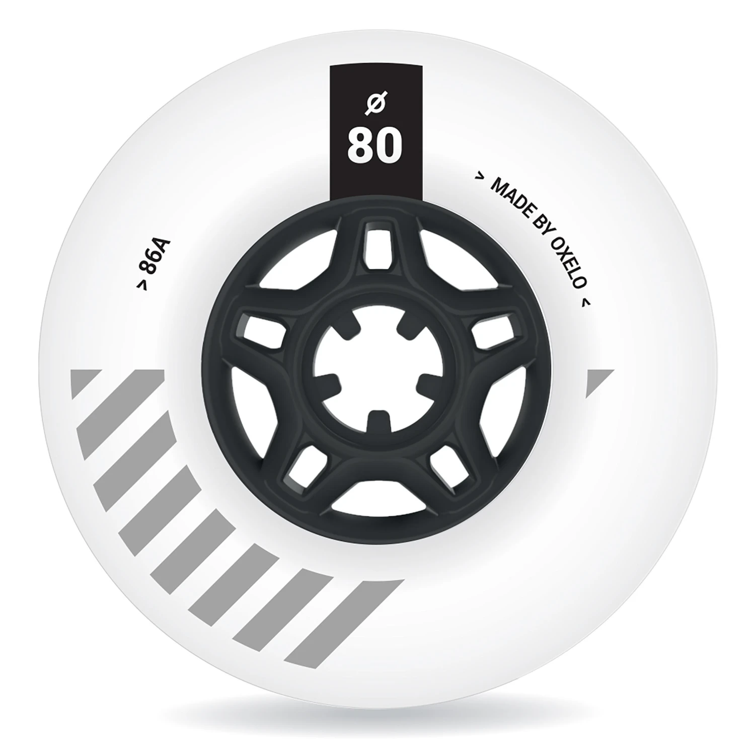 Wheels adapt to all skates accepting 80mm wheels (Oxelo: FIT500, FIT100, FIT 5 Jr, Fit 5, Sneak-In, Freeride SB5, Freeride MF500)