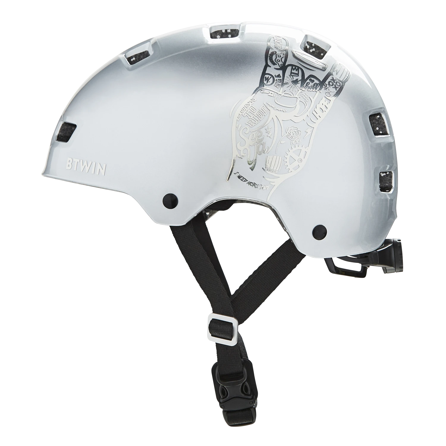 Ride safely! We have designed this helmet to protect children’s heads (ages 4 to 15) during BMX rides.”A look for riders!”This bowl-shaped helmet provides protection with more head coverage.