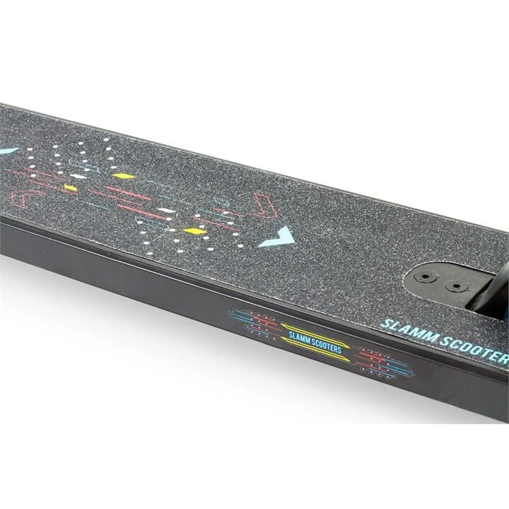 The Slamm Classic V9 is a beginner stunt scooter packed with high spec features. Bringing great value for money, it uses transparent PU on the wheels, coloured grips, Steel Riser T-Bar and Slamm’s exclusive Coffin Connector. The boxed channel deck is complete with front and rear deck blocks and the brightly coloured decals gives the collection a modern sleek look. Swirl Team grips and impact resistant bar ends give the control and confidence to start to progress skills and tricks.