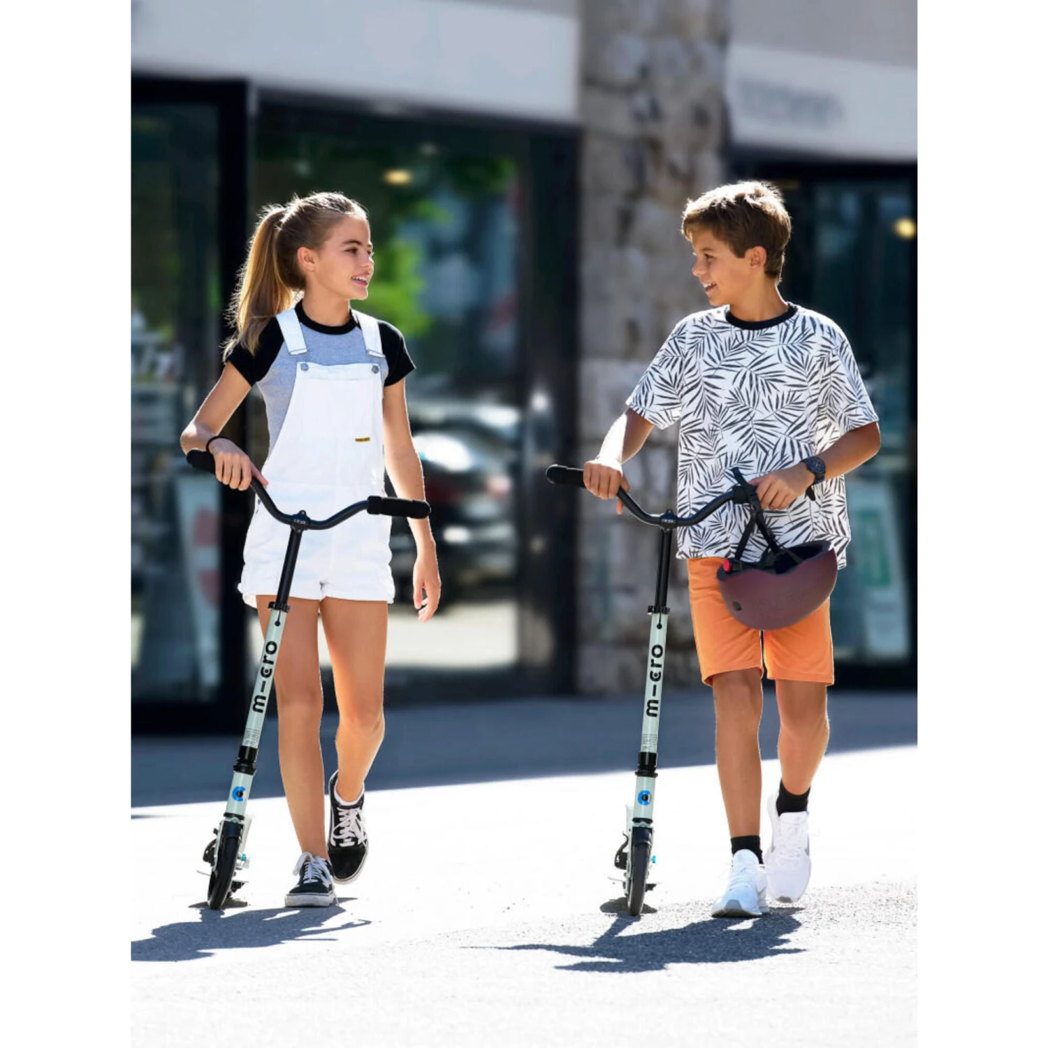 The Micro Speed Deluxe is our all new, perfectly proportioned journey partner. With large wheels with wider spokes meaning not only can you go further, faster you can do so incredibly smoothly. The adjustable handlebar extends to 103cm making it great for taller riders. One click simple folding makes it easy to store or carry. Cool chopper style handlebars not only look great but help you be in total control. In subtle Clay, Rose Pink or Blue colours, suitable for teens and adults. For short or long journeys. For breezing from A-B in comfort, in style and all the while being good to the planet and yourself.