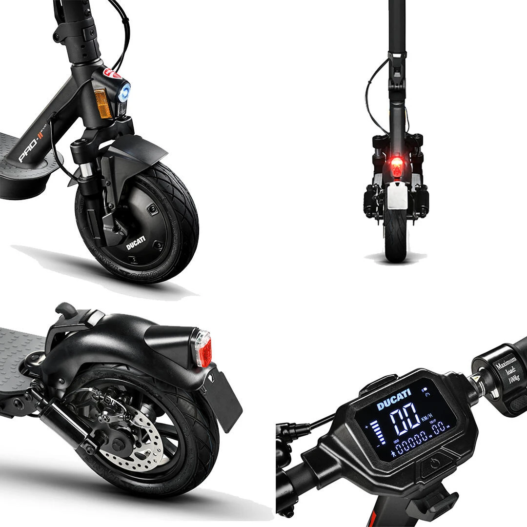 PRO-II EVO is the Ducati electric scooter that surprises and conquers thanks to the double suspension and the control offered by the connection to the Ducati Urban e-Mobility App.The scooter is equipped with a 350W motor and enhanced 374Wh battery that, combined with the lightness of the magnesium frame, allows you to cover up to 40 km on a single charge.