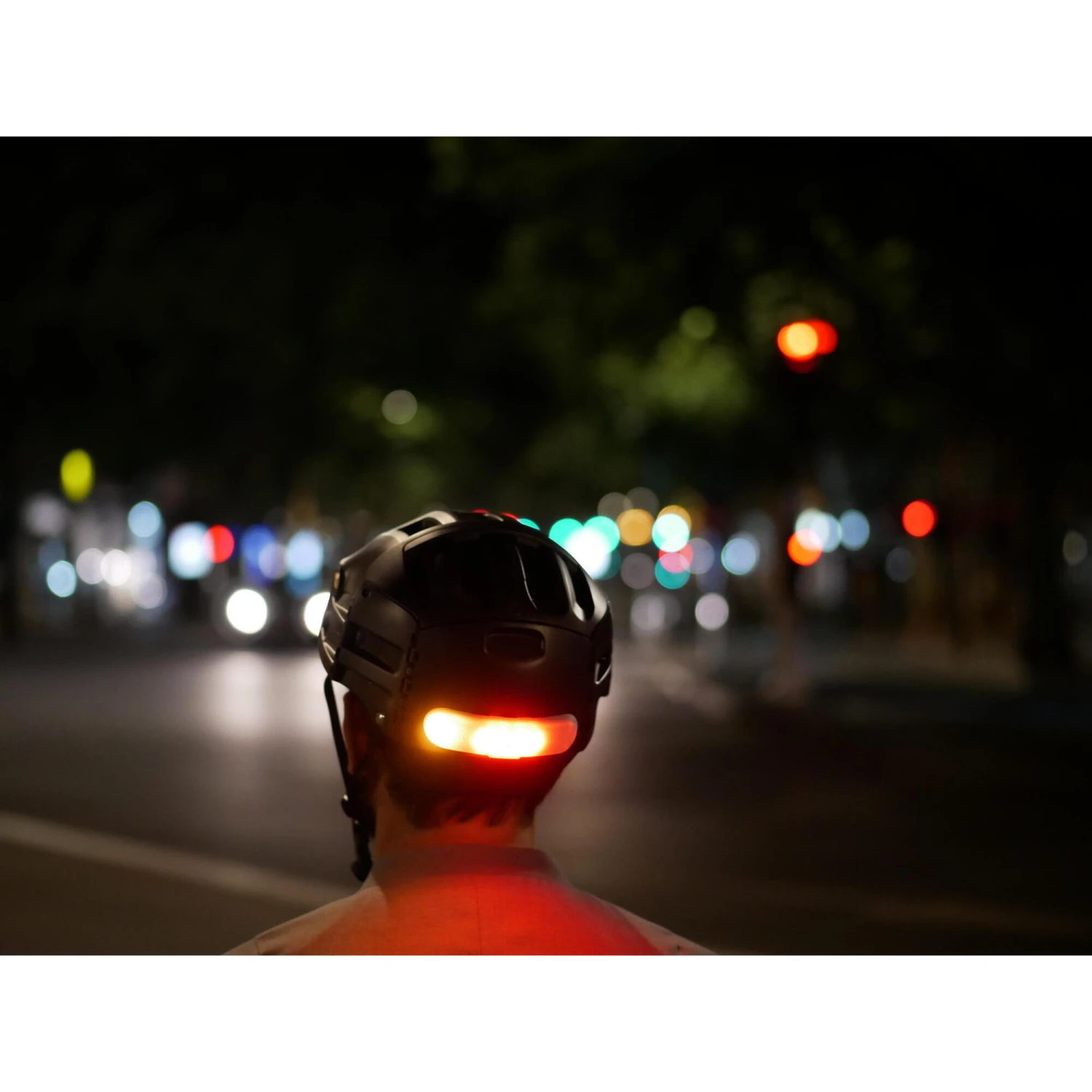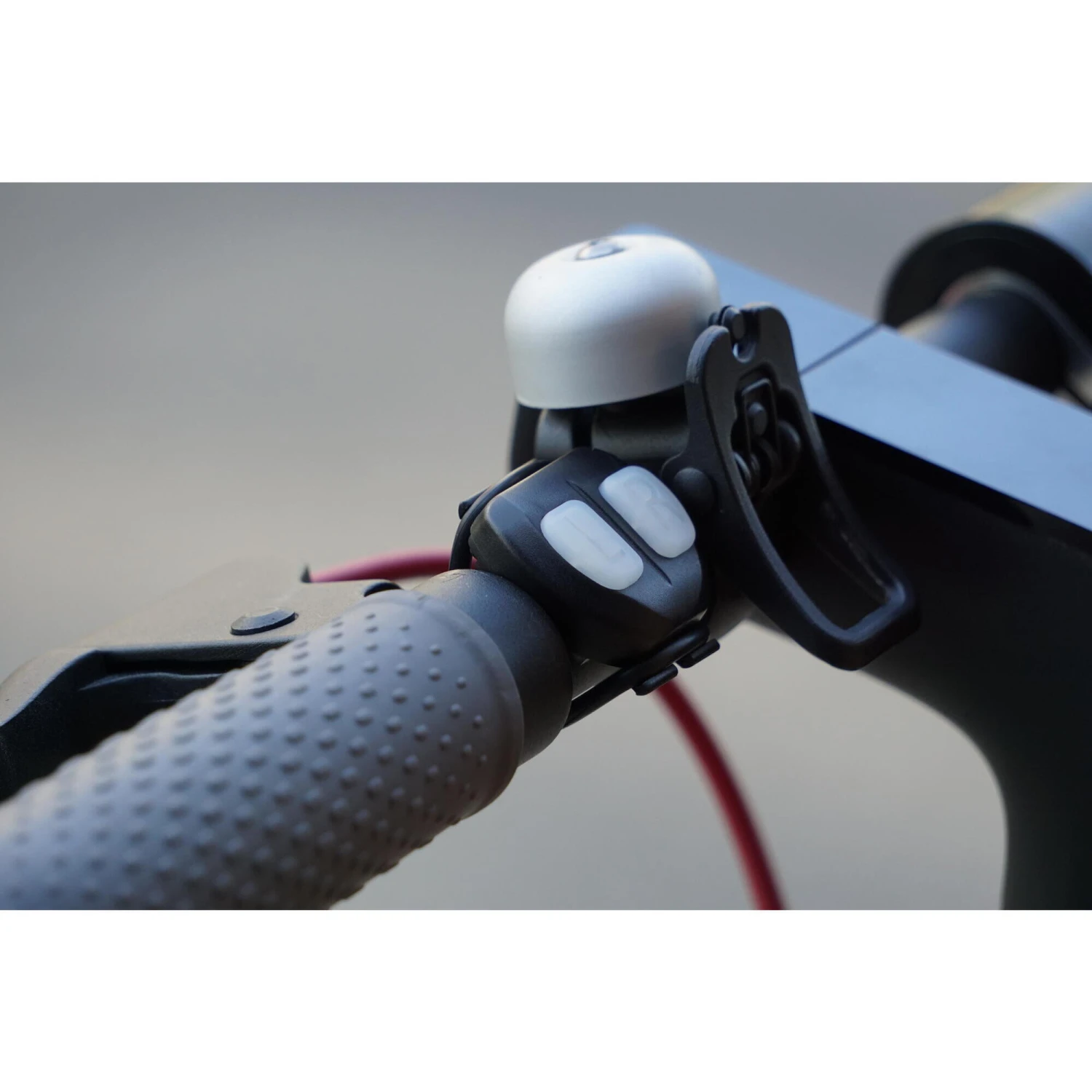 The Bloom light system has three light modes and attaches to your helmet to ensure your safety and make you visible to other users.Its built-in indicators, triggered via the remote control that you can attach to your scooter’s handlebar, indicate your position and changes of direction, whether it’s day-time or night-time.
