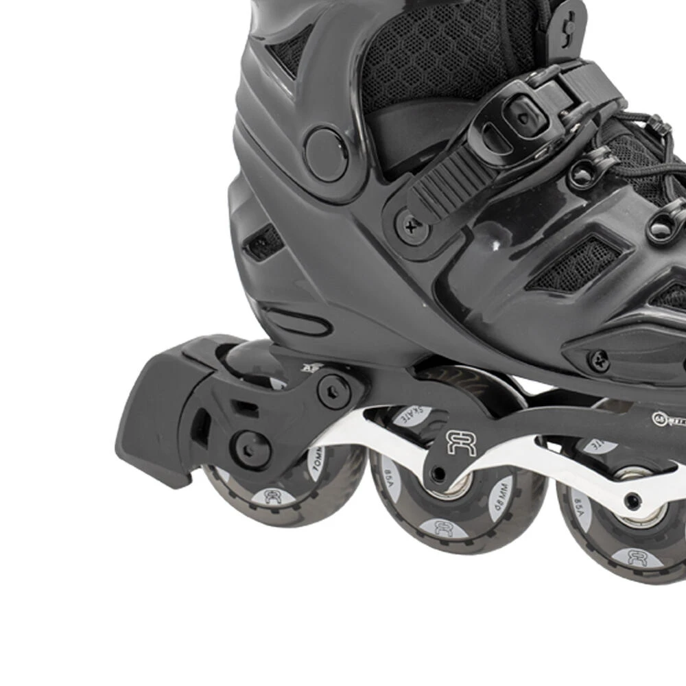 The FR kids adjustable skate known as AXS Skates has a solid and supportive hardboot that makes it a perfect skate for both fitness and freestyle skating. The AXS boot comes with a two-buckle locking mechanism as well as a speed lacing system, making this junior inline skate easy to put on and take off. The buckles keep the feet super snug and lock them in for maximum stability and control.