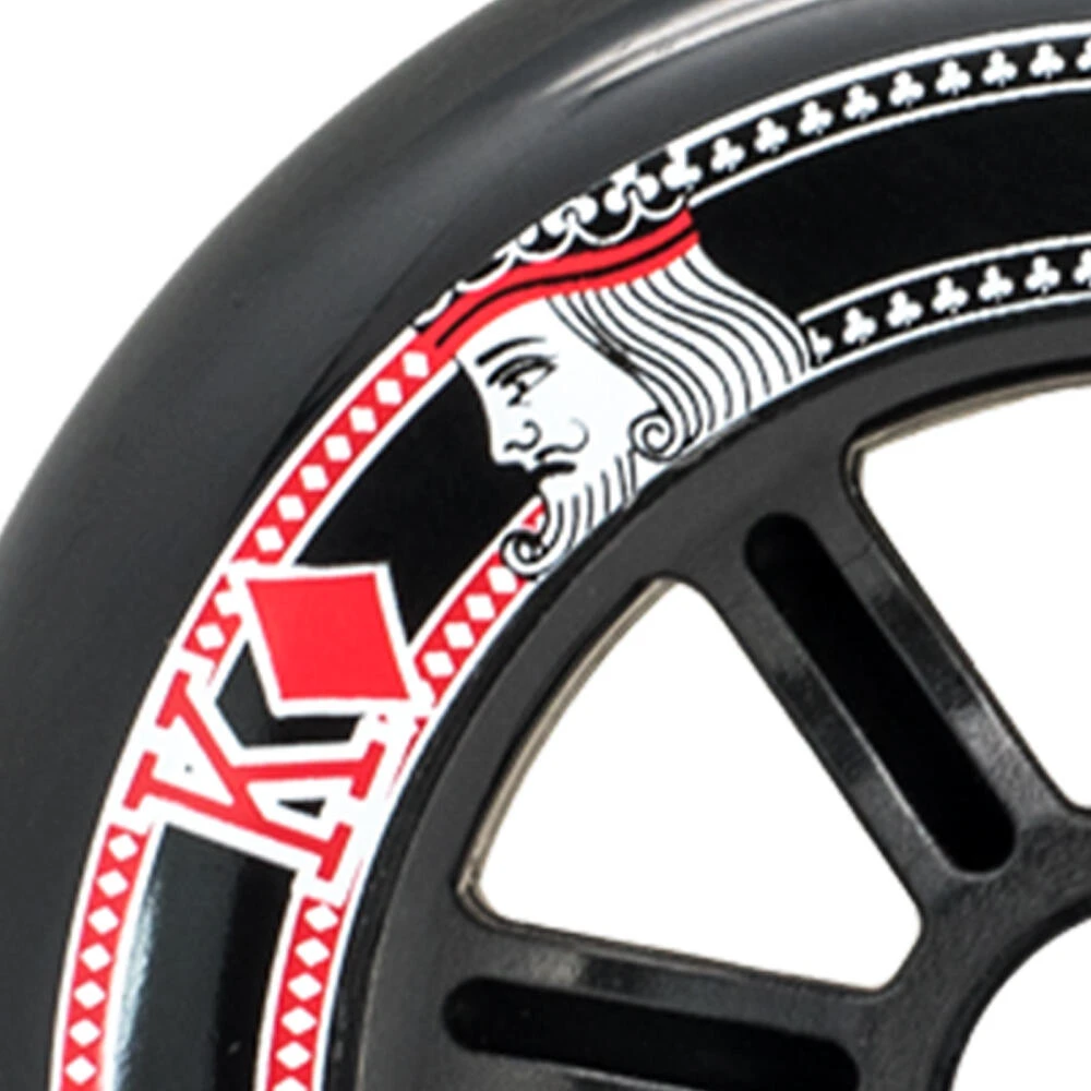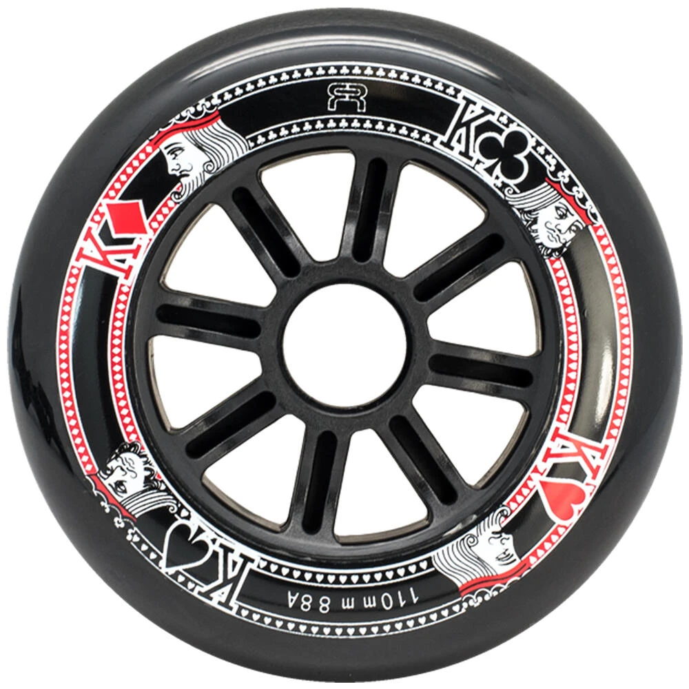The Street Kings Wheels from FR Skates have been designed for slalom and freeskating and have a wider profile, providing a bigger footprint with more grip and control. With the extruded core they are also fast and light.