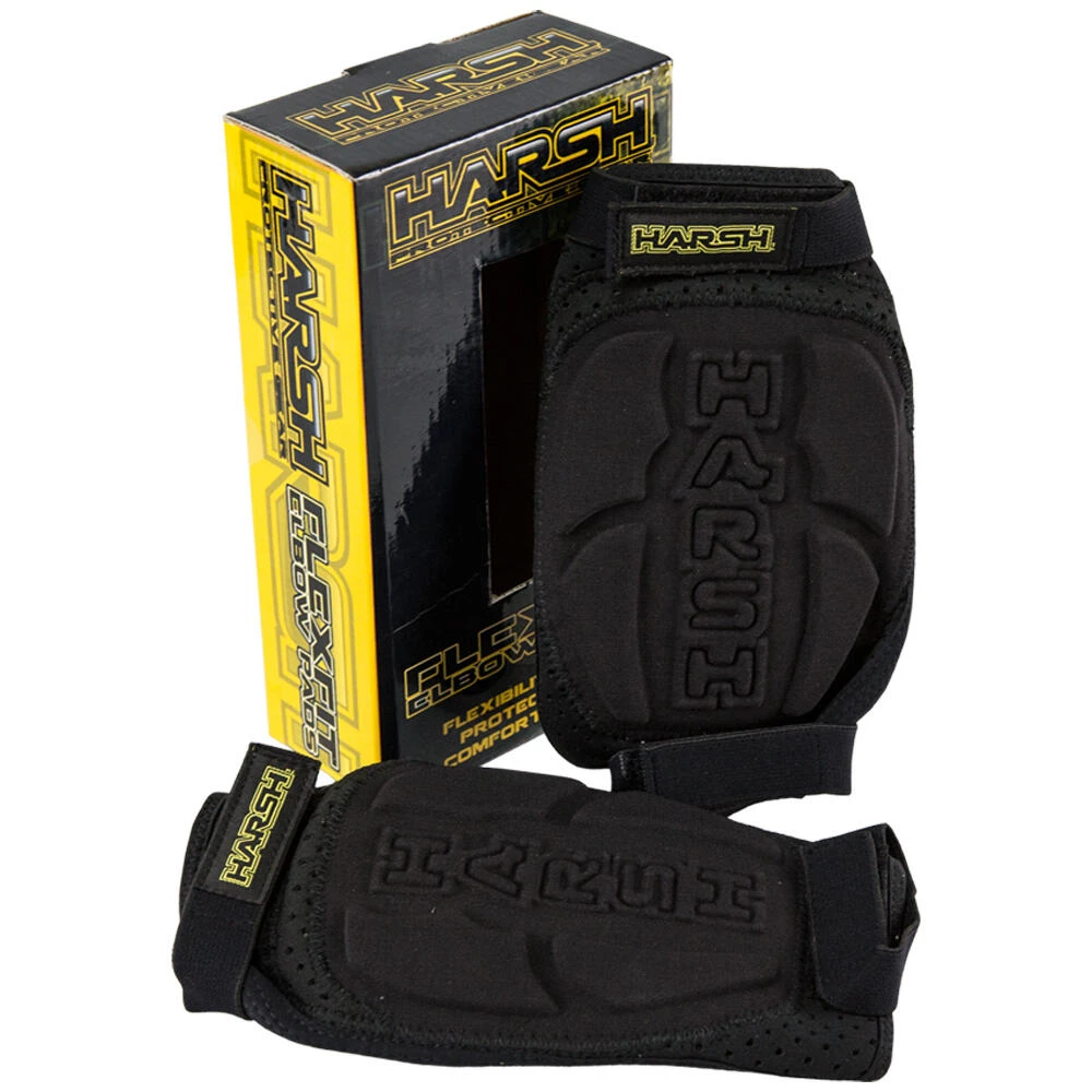 Harsh FlexFit Elbow Gaskets, they’re built to protect the key areas around your elbow on impact thanks to the multi-point padding and tough, non-woven material external cover.