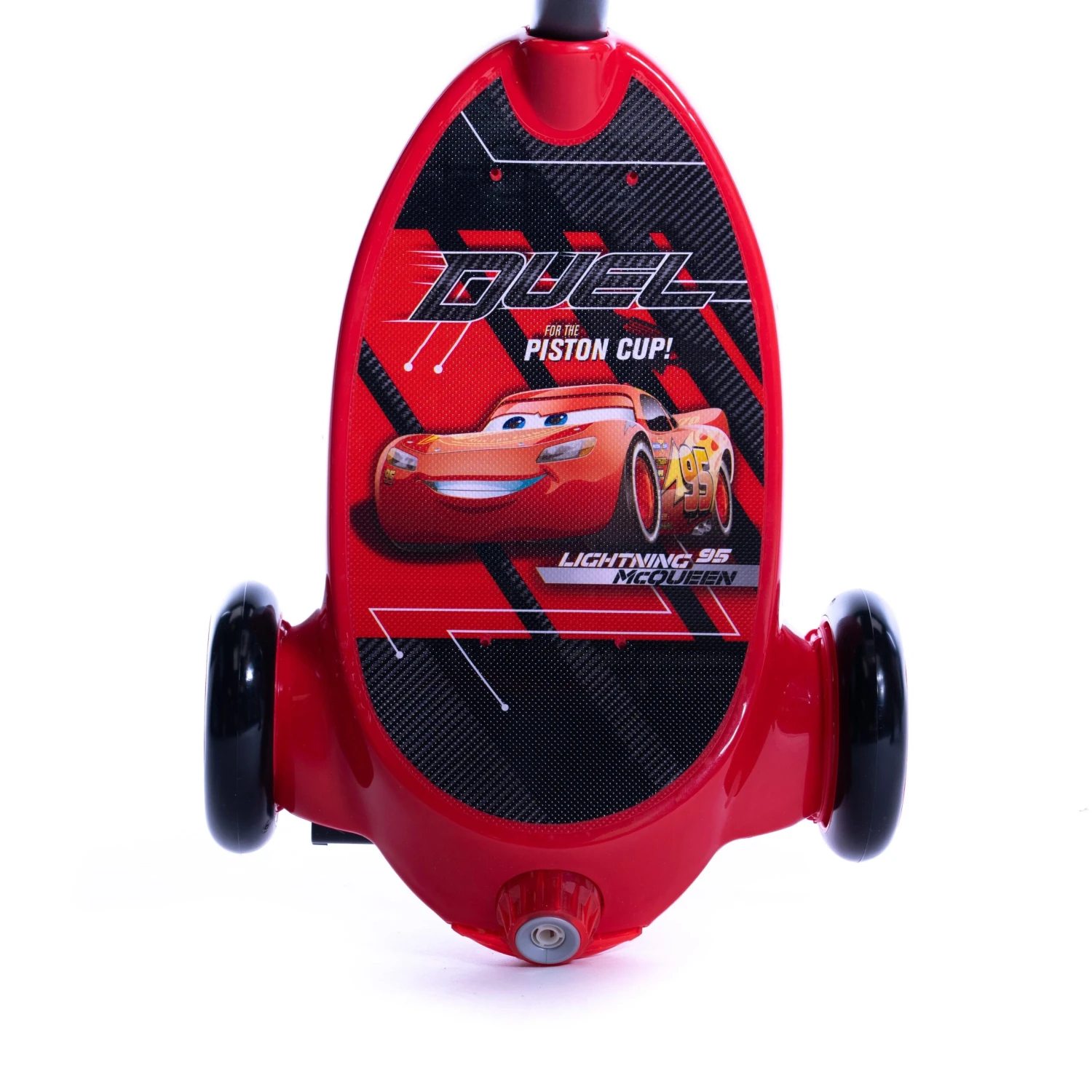 The wide stance, brightly coloured deck is ideal for a child to stand on with two feet. Featuring Lightning McQueen, the wide platform allows for safe standing and control and powered by a single button.