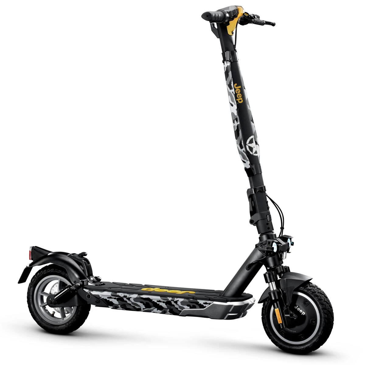 The Jeep® 2xe URBAN CAMOU is built to deliver uncompromising performance as you ride around the city prompted by the eagerness to explore and discover new streets that sets the Jeep® way of life apart. Full suspended and rugged, it is the electric scooter for those who want to take on all kinds of roads with ease.