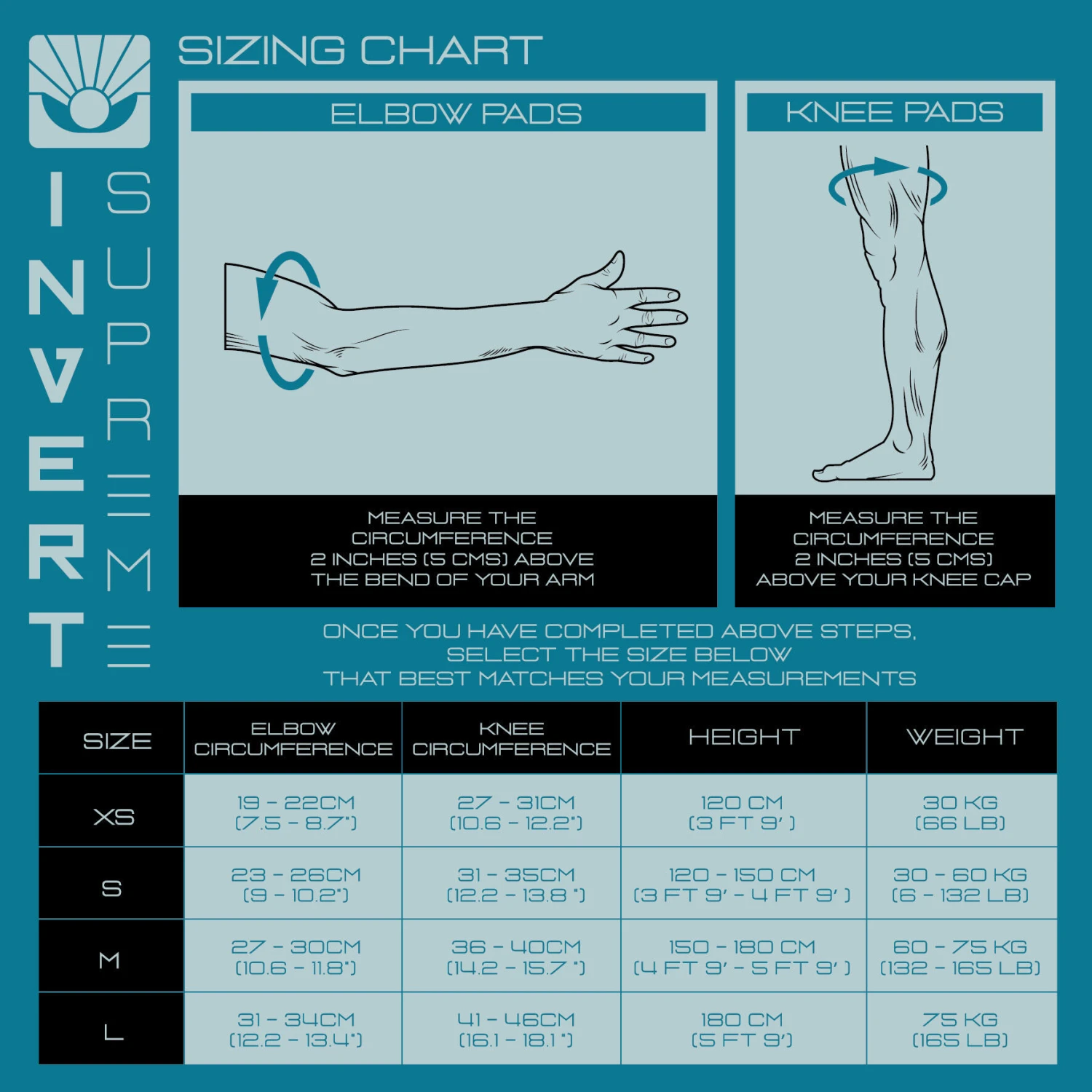 The Invert Supreme Knee and Elbow pad comgo has a double closure system with stretchy elastic top strap for easy adjustment and a comfortable fit! Features include: