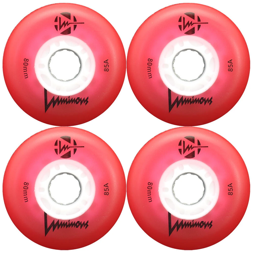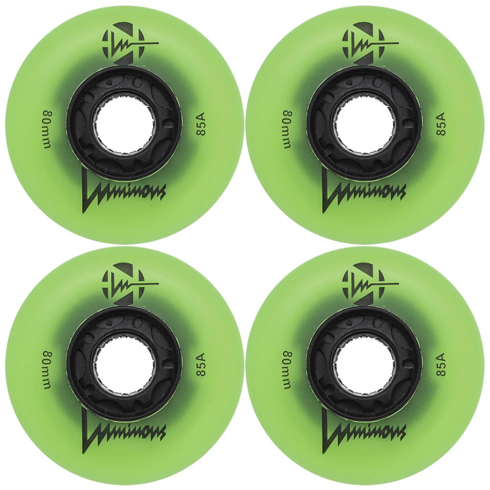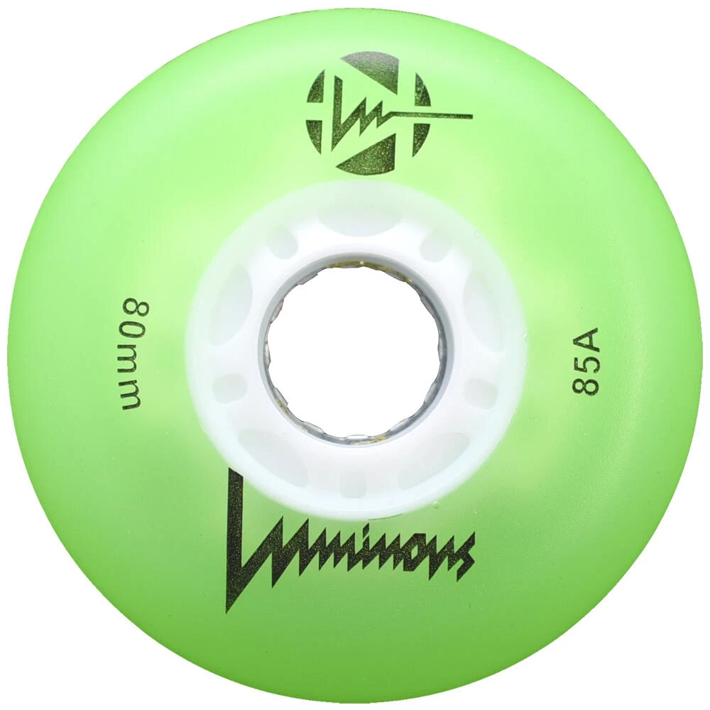 Luminous Wheels are the brightest skate wheels available. During the day, you have a bright, pretty wheel, and during the evening they additionally flash. Suitable to skate indoors and outdoors, and while the mid-hardness is not specialist to either indoor or outdoor, it is a perfect leisure wheel.