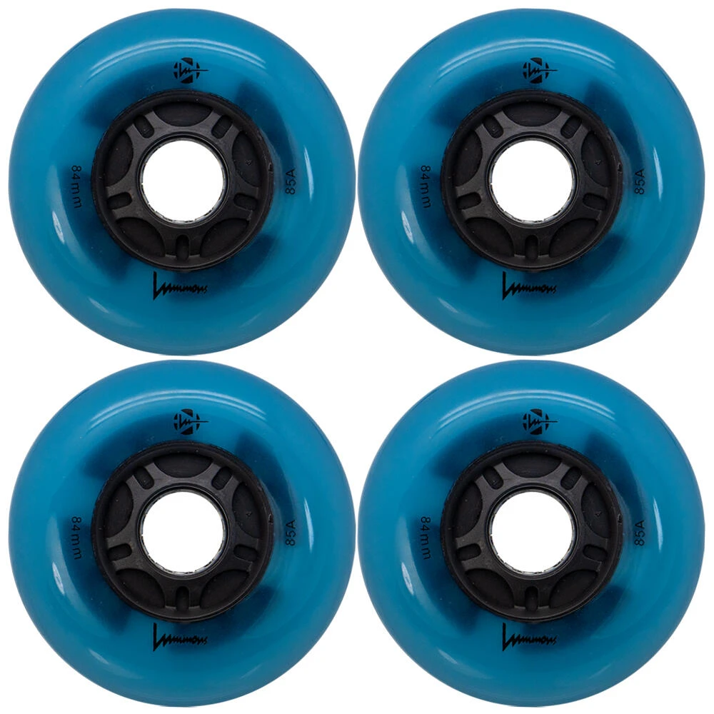 Luminous Wheels are the brightest skate wheels available. During the day, you have a bright, pretty wheel, and during the evening they additionally flash. Suitable to skate indoors and outdoors, and while the mid-hardness is not specialist to either indoor or outdoor, it is a perfect leisure wheel.