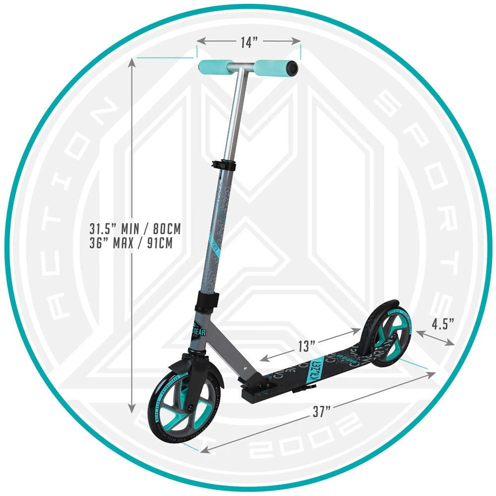 The Madd Gear Carve Kruzer 200 Folding Scooter is the ultimate cruiser or commuter scooter with large 200mm smooth rolling wheels. You can glide along effortlessly to keep up with the kids, cruise the boardwalk at the beach or even commute to school or college! The Madd Gear Carve Kruzer 200 is the Kruzer 150’s older sibling.
