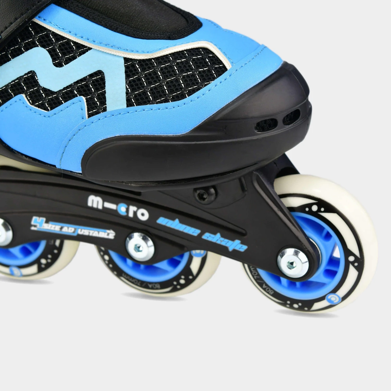 The Micro Majority are the perfect skates for children who are beginners to inline skating. We’ve made it easy for them to get their skates on with the clever lace-less system. They simply slip their foot in the boot, secure the buckle and off they go. Great for kids who can’t tie laces and makes skating totally fuss-free. With one click, you can adjust the boot to suit your child’s foot down to an unusually small size 6. Skates that grow as their feet do and can even be used by parents too.