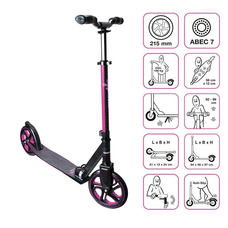 80-97 cm handlebar, 3-way height adjustable, quick release and safety lock included