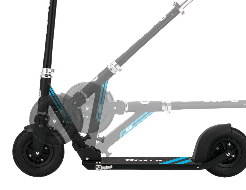 Built for everyday commuting on rough, urban terrain. Designed with reliability and durability in mind, the A5 Air’s super-strong construction, pneumatic commuter tyres and patent-pending, anti-rattle technology make it ideal for your daily ride. The A5 Air is designed for daily city commuting in urban environments. With performance and reliability in mind, this scooter features 8″ (200 mm) wheels and tough, shock-absorbing, pneumatic tyres, to ensure easy and enjoyable manoeuvring over even the roughest surfaces. Featuring adjustable-height handlebars, a long deck, durable aluminium construction, easy folding system and our patent-pending anti-rattle mechanism, the A5 Air is designed to meet the unique needs of the commuter.