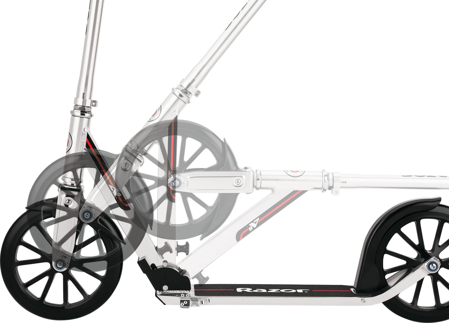 Taller riders, rejoice! The A6 is designed specifically for you, with handlebars that reach an incredible height of 42” (1067 mm) with an extra-long, 13.4” (340 mm) deck. Featuring Razor’s world-renowned, quality construction and anti-rattle technology, this is the ride taller riders have been expecting. With extra-tall handlebars and a longer deck, Razor’s A6 was designed specifically for taller riders. No more hunching over handlebars – tall riders stand proud! Razor’s proprietary anti-rattle handlebar and folding mechanism ensure the smoothest, quietest ride around. No more rattling, so you can enjoy your ride!