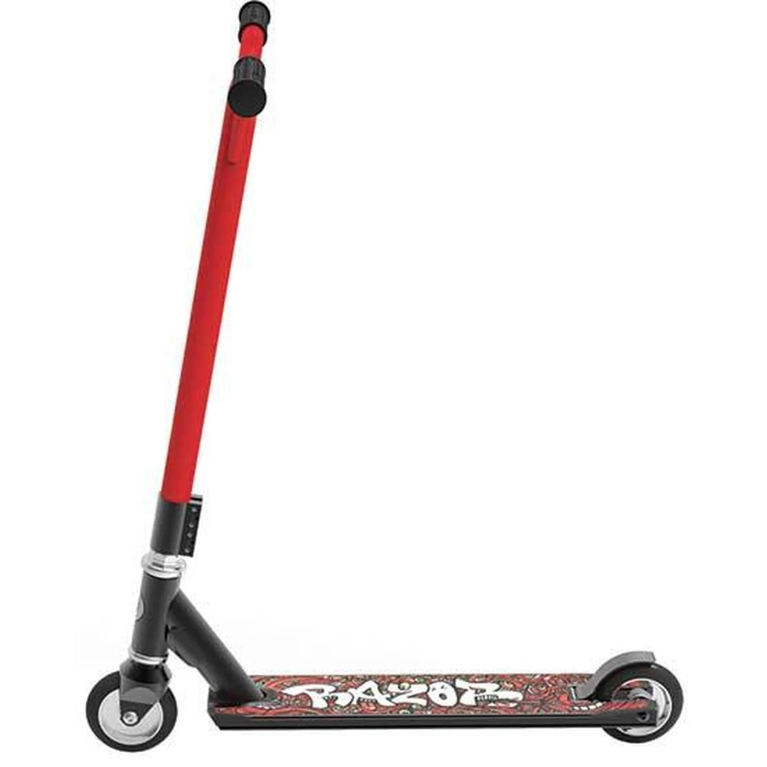 A pro-style stunt scooter for more advanced riders, the Razor Beast V6 sport scooter features a fixed, riser-style handlebar, soft, rubber grips, quad-stacked clamp, and aluminum deck designed specifically for stunts.