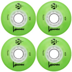 LUMINOUS LED LIGHT UP INLINE SKATE WHEELS GREEN 76 MM – SET OF 4