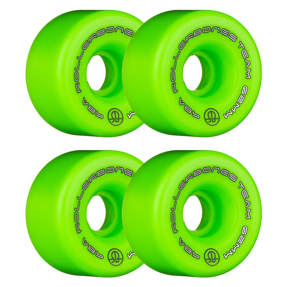 RollerBones Team Logo wheels are one of the most popular wheels on the market. Available in 2 sizes, 57mm and 62mm, and in 5 colours and 2 hardnesses the options are endless.