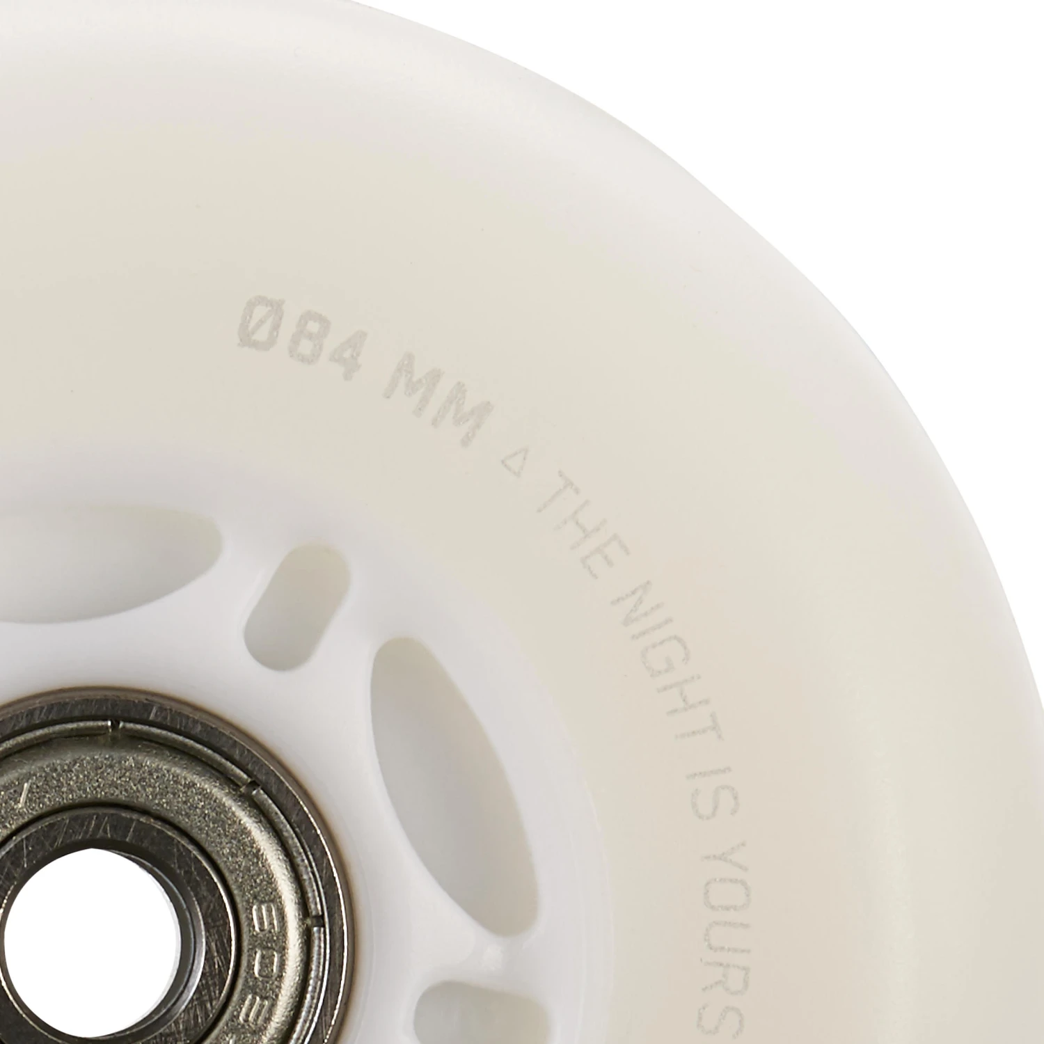 We’ve designed these wheels for adding light and even more fun to your skating outings.Add some light to your night-time outings with this ready-to-use inline skating wheels/bearings pack.Compatible: FIT500