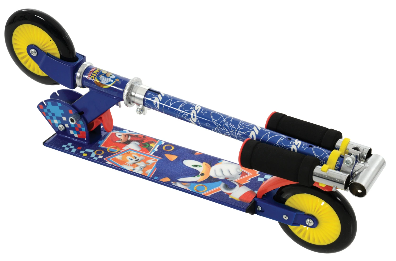 3 wheels. Featuring soft touch handlebar grips, reactive rear footbrake and lick puncture proof tyres, riders are in for a fast and comfortable journey! The scooter folds and unfolds quickly and easily making it perfect for transportation and storage and is ready to ride right out of the box! The fully printed stem wrap and anti-slip footplate feature cool graphics meaning riders will look neat on the streets!