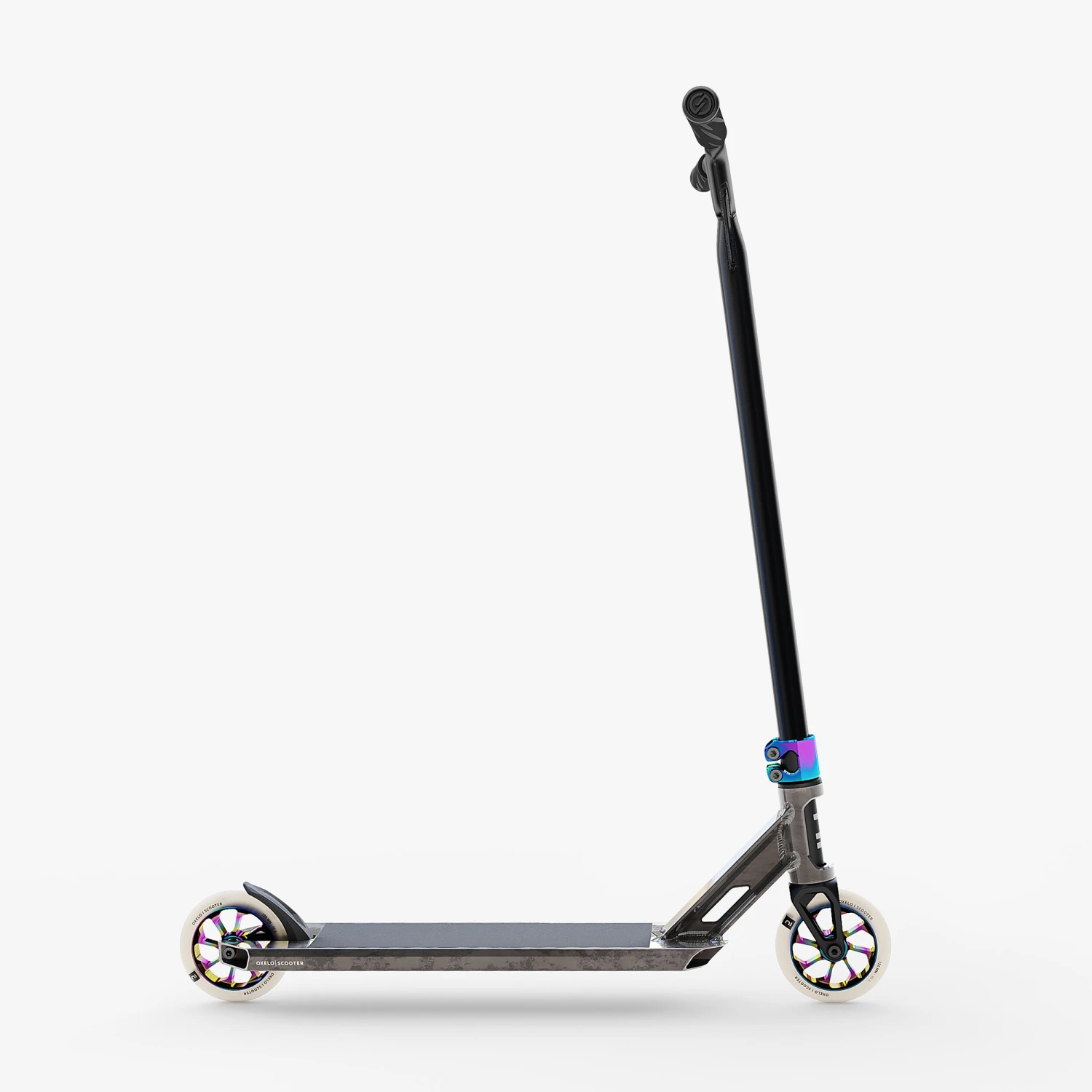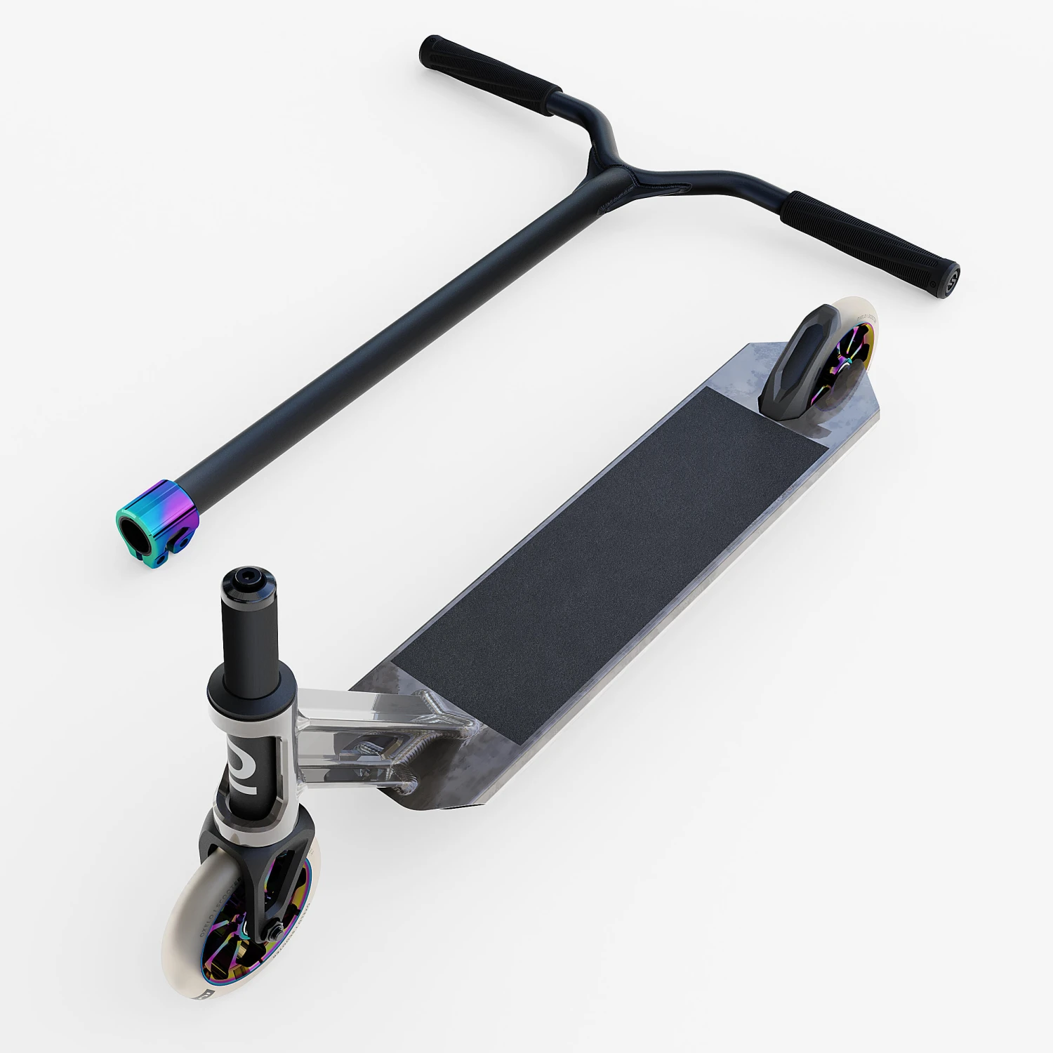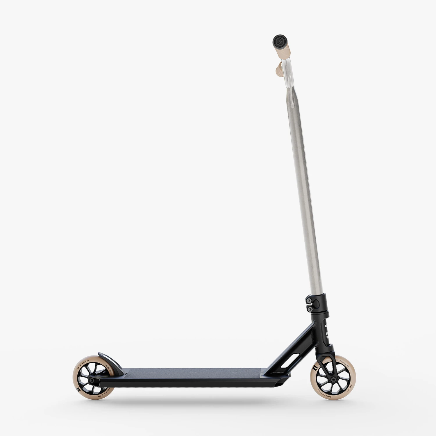 The fork on this freestyle scooter is unique in that it’s made from forged aluminium (the aluminium has been pressed several times to make it denser and more durable).