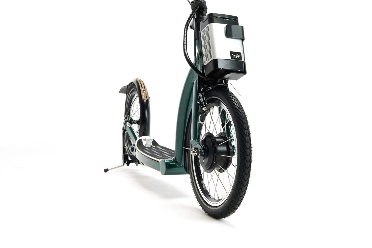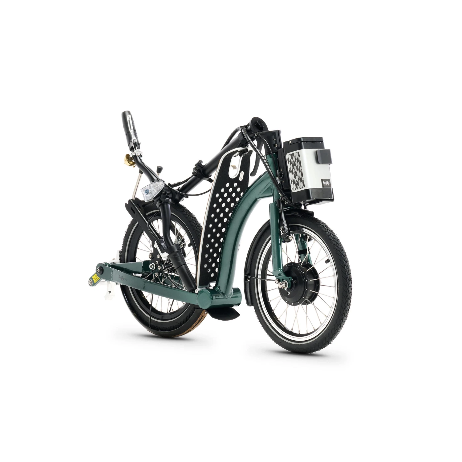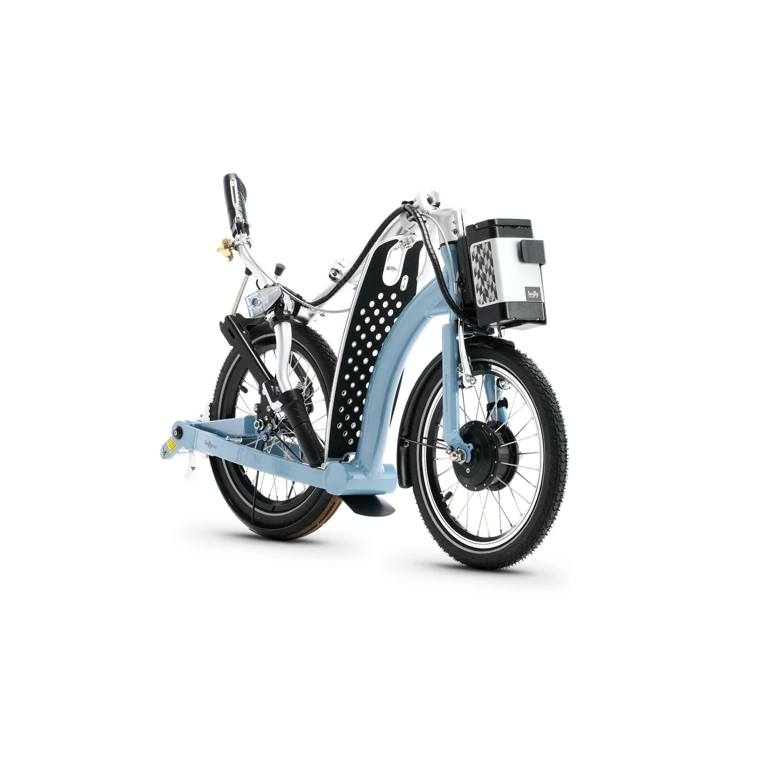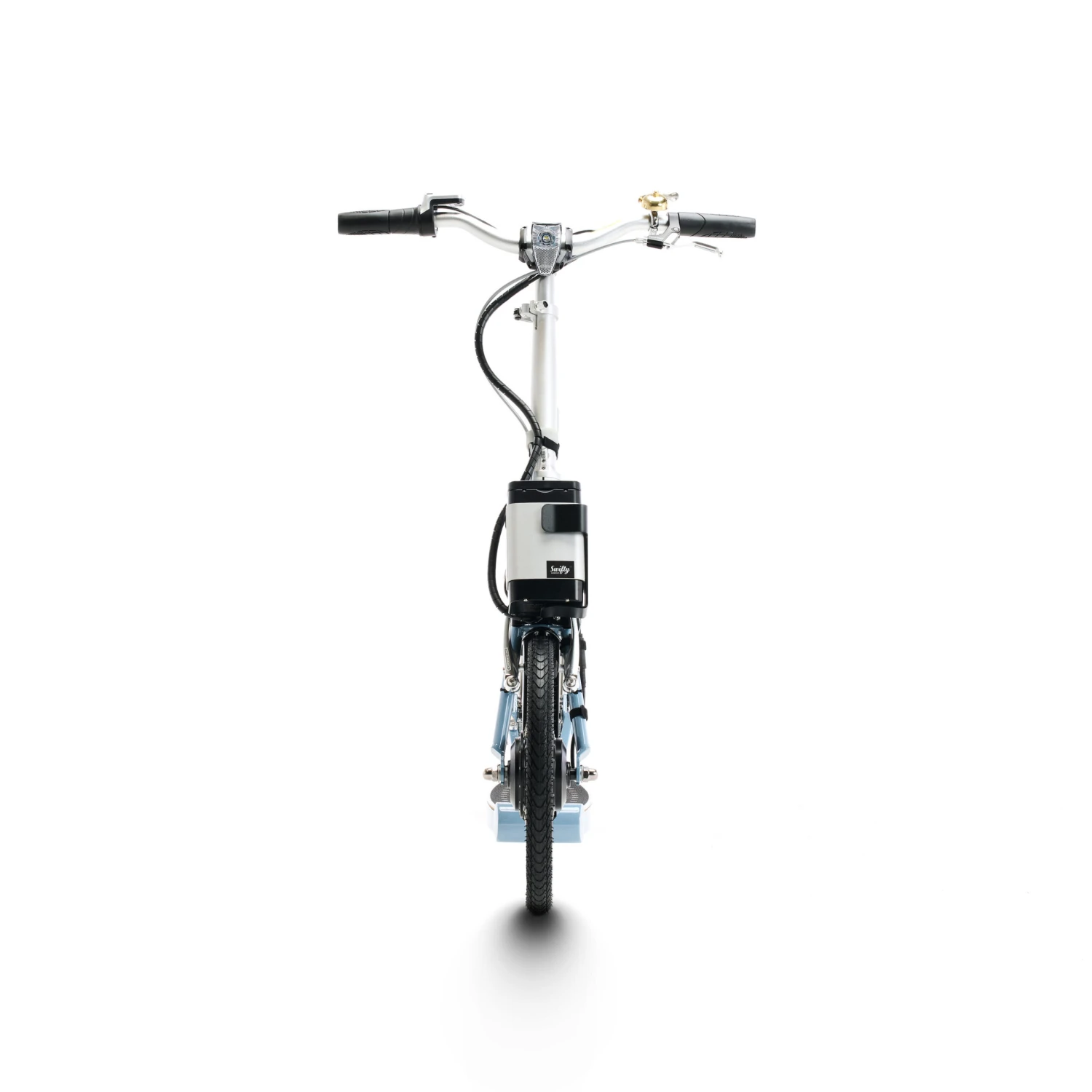 With safety in mind, the SwiftyONE-e comes with front and rear lights; front, rear and side reflectors (tyre wall); and a stylish brass dome Swifty bell! We strongly recommend riders wear a helmet, and high-vis and reflective clothing at night