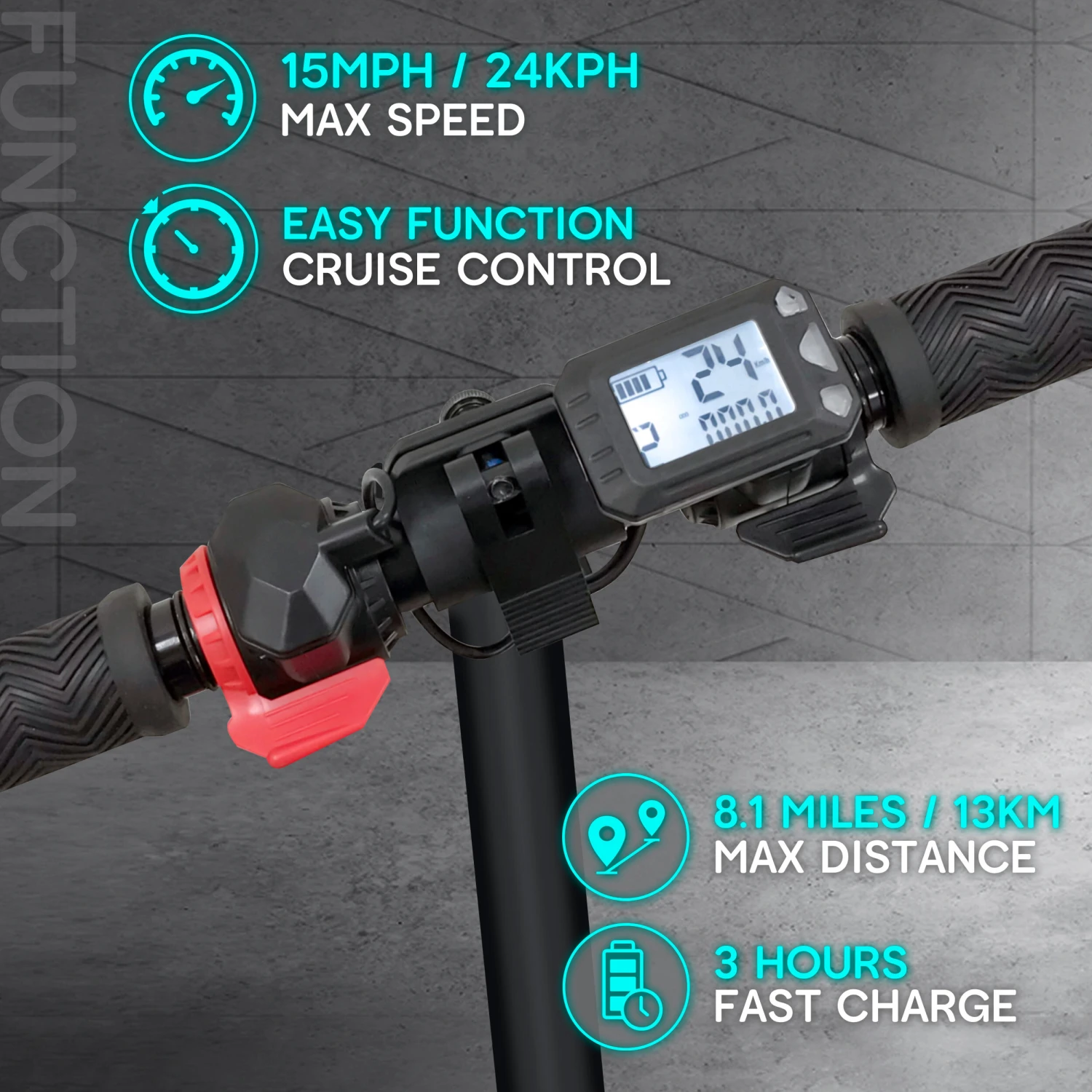 For your ease, the Flex comes equipped with an easy-to-use LCD screen so that you can stay connected to your journey statistics. At a quick glance you can see your battery, speed and speed mode. For your added comfort the Flex comes with cruise control so that you can cruise at your own speed whilst saving battery.