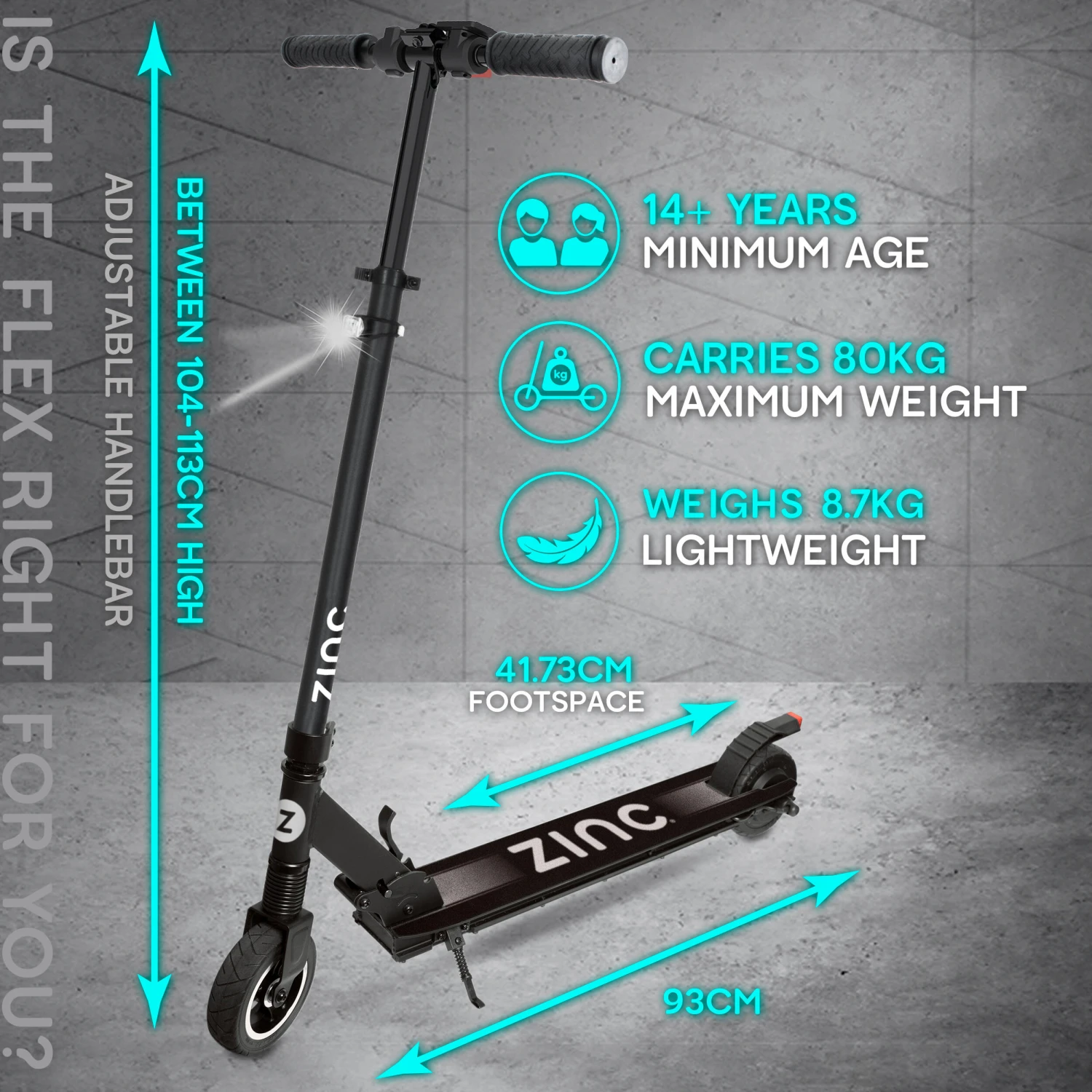 The fun is endless with the Zinc Folding Electric Flex Scooter. To begin your journey with your Flex, simply kick off and go! The Flex comes with a quick 3 hours charge time allowing for a max distance of up to 8.1 miles, so you will be feeling the wind against your face before you know it!